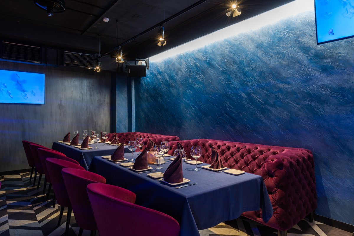Атмосфера в ресторане приятная, хороший звук. Интерьер сказочный и космический. Администратор была очень доброжелательной. Мы выбрали меню для свадьбы и забронировали столик на тринадцать человек.
